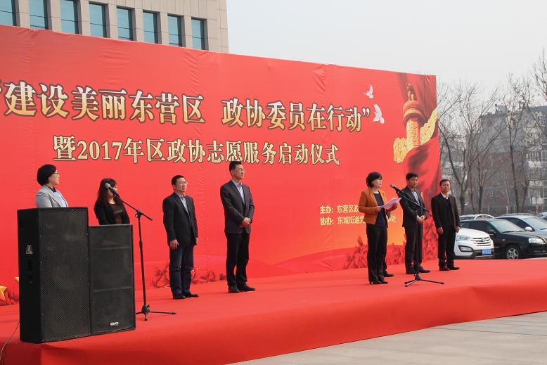 3月18日上午,“建設美麗東營區(qū),政協(xié)委員在行動”暨2017年東營區(qū)政協(xié)志愿服務活動啟動儀式舉行。區(qū)委副書記張成仙出席儀式并講話,區(qū)政協(xié)主席楊繼紅主持儀式活動,區(qū)委常委、宣傳部部長、東城街道黨工委書記宋士棟等出席儀式。