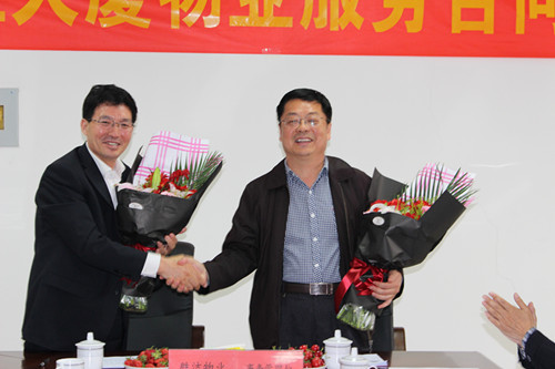 然后,在創業大廈會議室舉行簽約儀式,勝潔集團董事長羅軍三與臨朐縣事務管理局馬局長分別在項目合同書上簽字,標志著雙方將再度攜手,共同為創業大廈的物業管理與服務保障工作再創新的佳績。