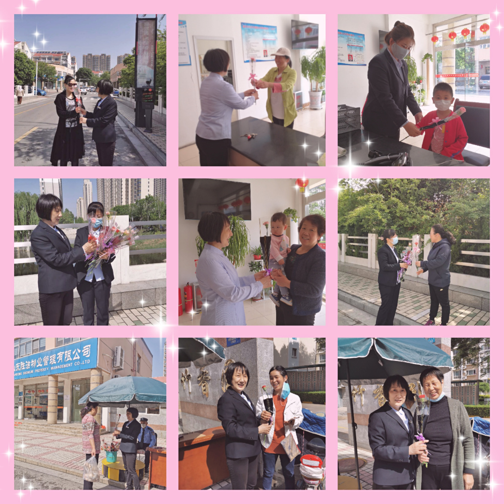 5月10日上午,在母親節(jié)這個(gè)特殊的節(jié)日里,為了表達(dá)對母親的深深祝福,勝潔物業(yè)新區(qū)住宅客戶服務(wù)中心精心準(zhǔn)備了一些康乃馨,在前臺(tái)和小區(qū)門口贈(zèng)與往來的女士和家人們,花雖不多,但對母親的愛一點(diǎn)都不少!此次活動(dòng)獲得業(yè)主的一致點(diǎn)贊。