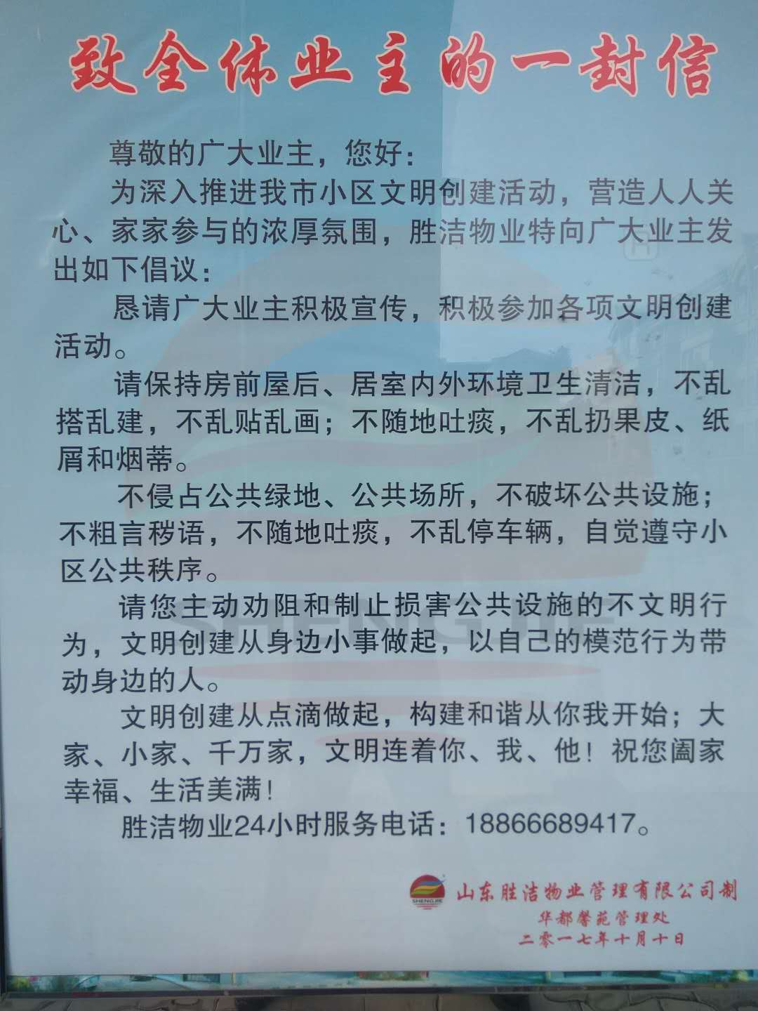 自5月份以來,全市大力開展文明創(chuàng)建活動,2017年為物業(yè)文明服務(wù)年,山東勝潔物業(yè)管理有限公司高度重視,每月召開文明創(chuàng)建活動總結(jié)推進(jìn)會議。