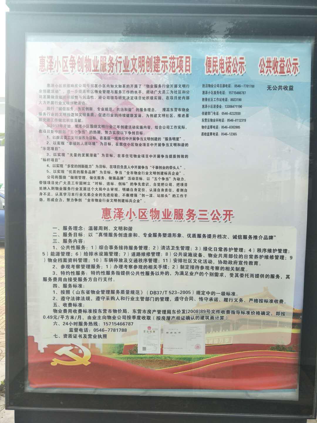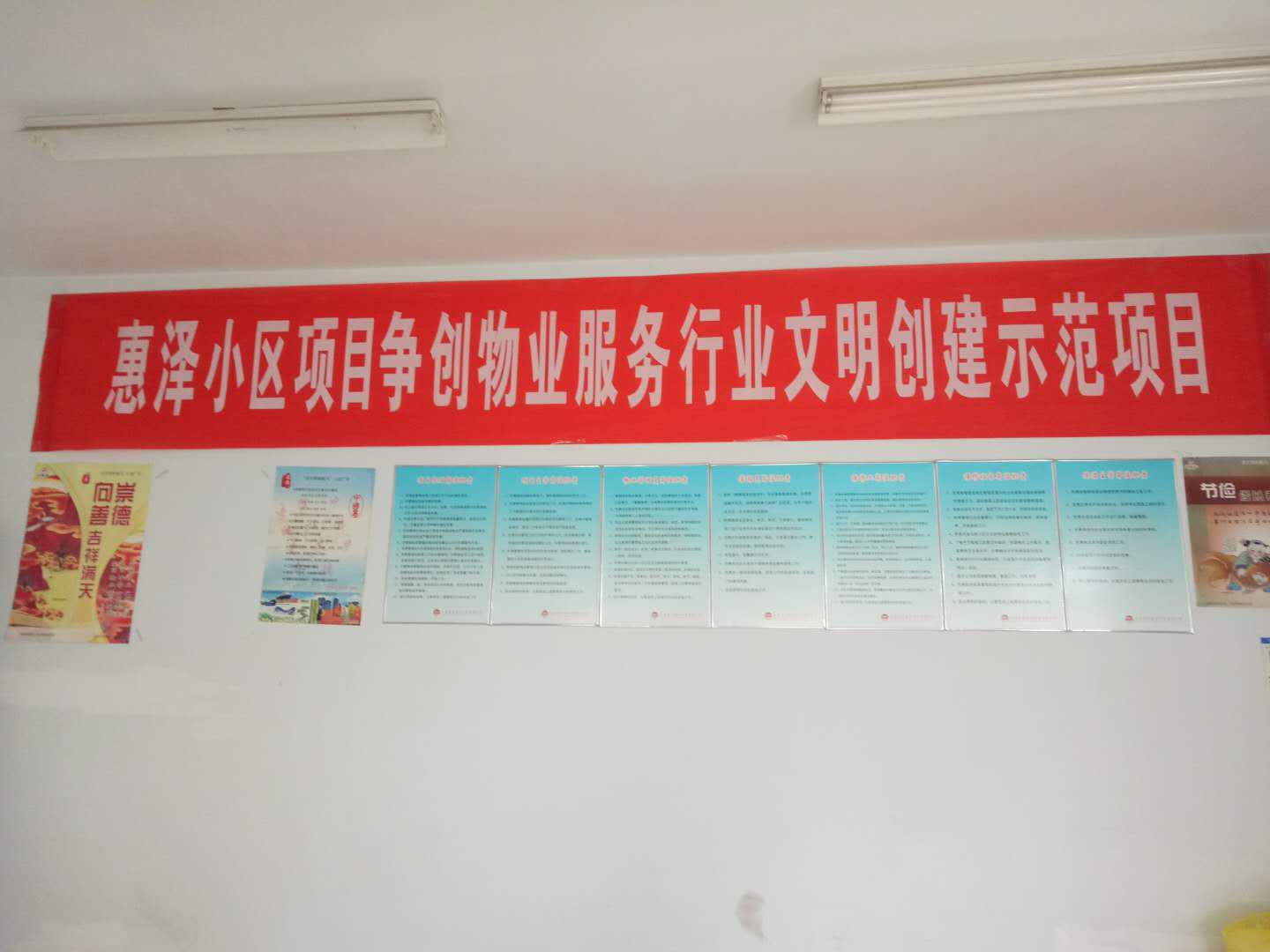 踐行“誠信服務、務實創新、專業規范、共治和諧”的服務理念, 提高東營市物業服務行業的文明程度和文明素質,促進行業的持續健康發展,為創建文明社區、推進基層黨建工作做出積極貢獻。 從2017年開始,惠澤小區圍繞文明行業三年創建活動實施內容,結合公司工作實際,圍繞“做精管理、做優服務、做強品牌”活動目標。以“五個爭當”為動力,帶領項目處廣大員工牢固樹立“對標、追標、創標”的爭先意識,明確自身定位、認清自身責任,看到自身不足,不斷增強“創一流、站排頭”的工作干勁,形成合力,努力爭創 “全市物業行業文明創建示范項目”。
