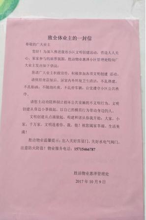 為了提升物業服務企業的社會形象,充分發揮物業服務行業在城市文明創建中的重要作用,近期,由省、市住建局、市文明委和市物業協會共同組織,在全市物業服務行業中大力開展文明行業創建活動。