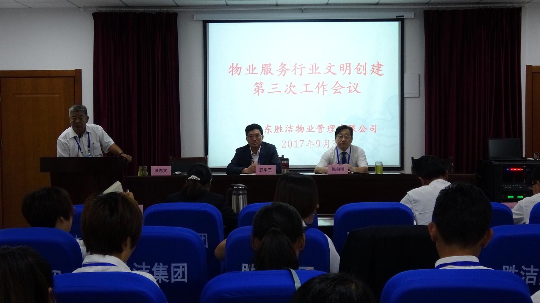 2017年9月30日,在山東勝潔物業管理有限公司總部培訓室召開“物業服務行業文明創建第三次工作會議”,公司領導、區域經理、項目負責人及總部辦公室人員參加了會議。