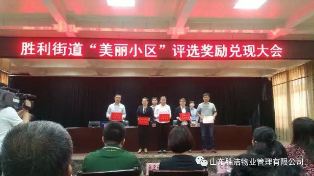 2017年5月12日,舉辦勝利街道“美麗小區”評選獎勵兌現大會。