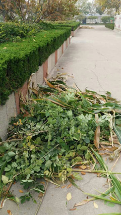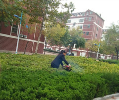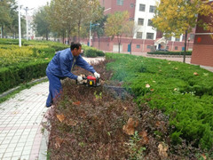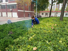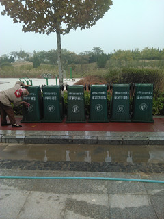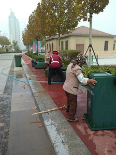 悅來山水居項目處工作人員清洗垃圾桶,使小區內衛生更加整潔