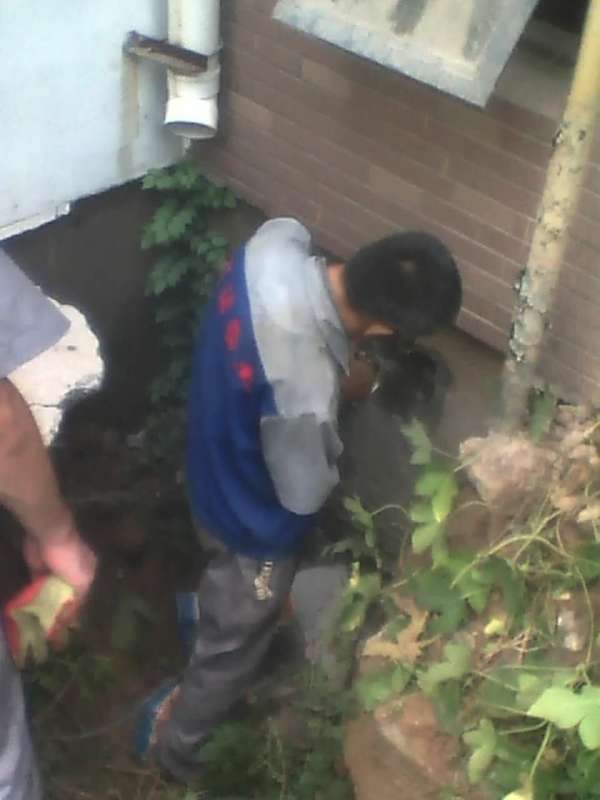 金融小區13號樓1單元污水管線維修現場