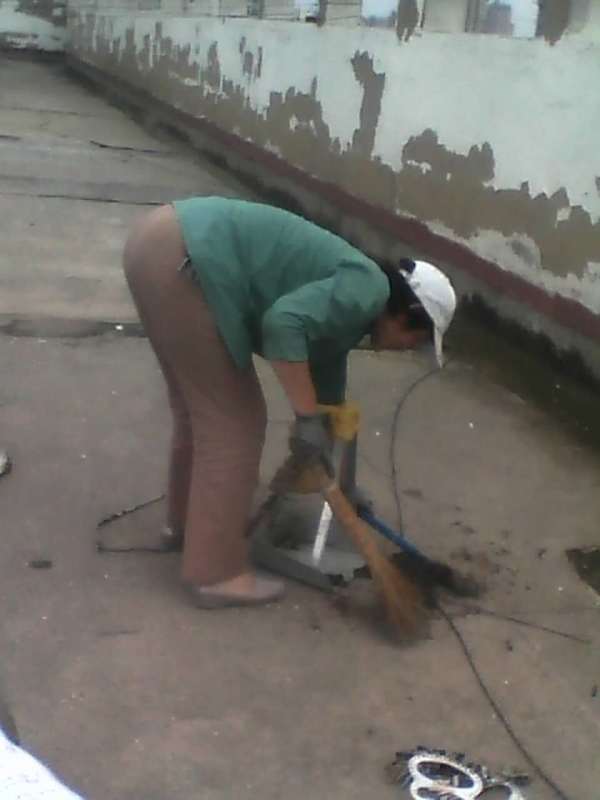 j金融小區全體員工清理打掃樓頂層衛生