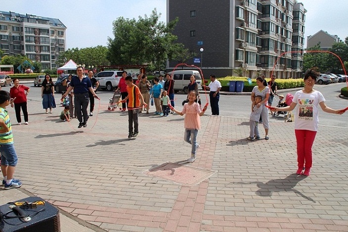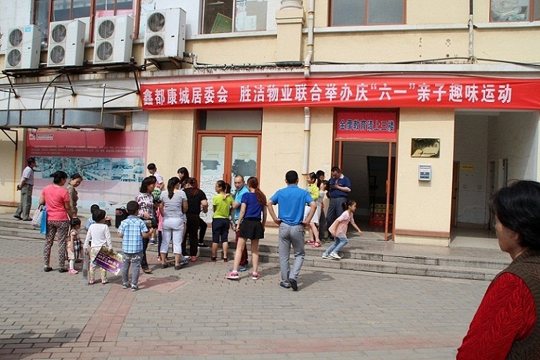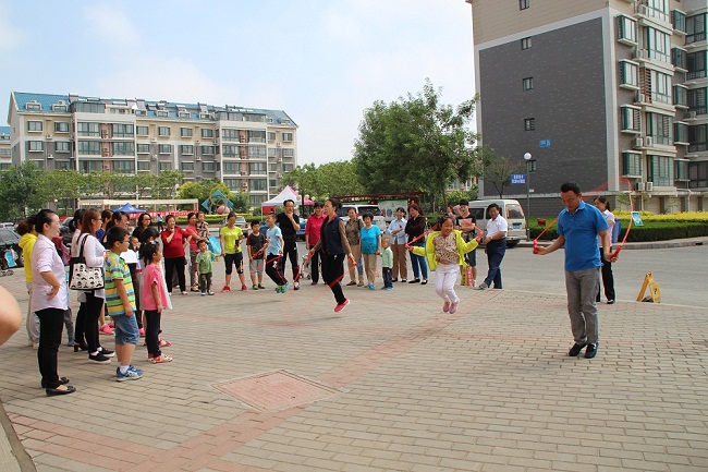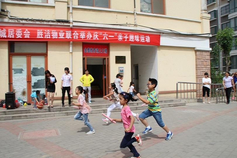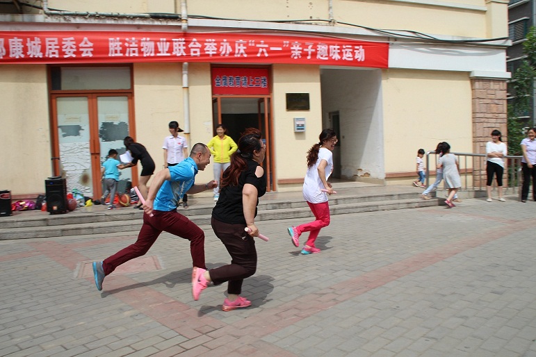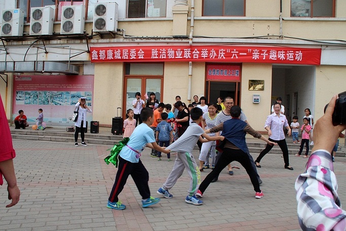 2015年5月30號星期六,山東勝潔集團鑫都康城項目處聯合社區舉辦六一親子趣味活動比賽,業主朋友們積極報名,現場充滿溫馨愉悅的氣氛。本次活動有六個小游戲:乒乓球接力,趕豬腳,跳繩,接力賽,揪尾巴,踩氣球。現場小朋友玩的不亦樂乎。