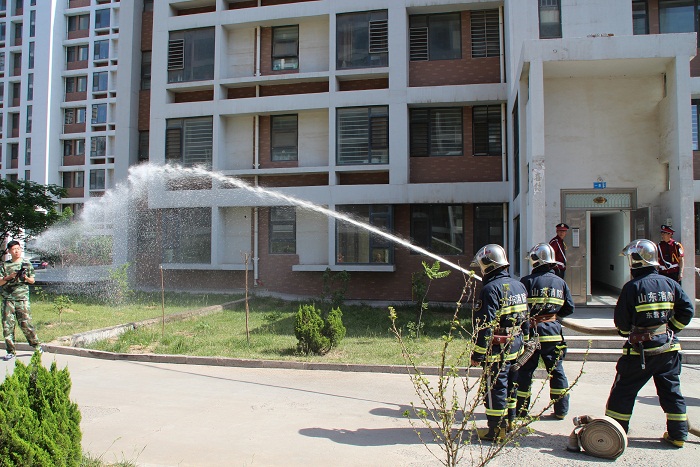 外部消防車現場對綠化帶水泡滅火演練