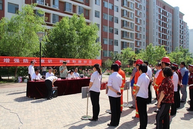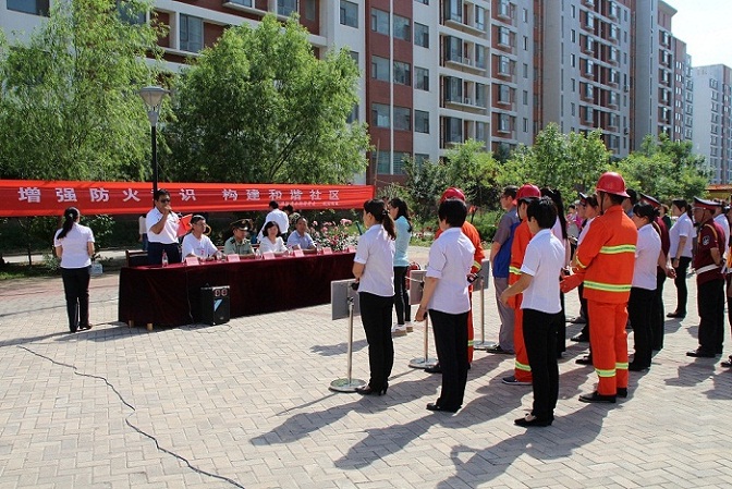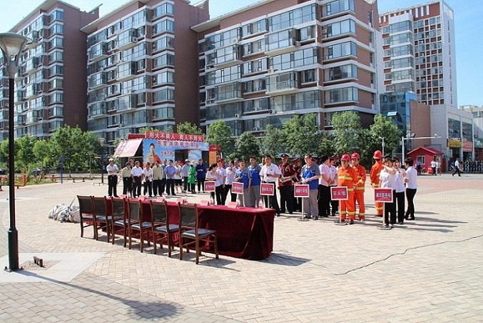 2015年5月30號,山東勝潔物業(yè)集團金融小區(qū)項目處聯(lián)合東城街道金融居委會社區(qū),消防支隊舉行了以“普及消防知識,增強防火意識,構(gòu)建和諧社區(qū)”為主題的消防演習活動。參加本次演習的領(lǐng)導有山東勝潔物業(yè)集團常務(wù)副總張志文先生、東營區(qū)安監(jiān)局副局長曲松村先生、東營區(qū)消防支隊黃河路中隊隊長齊超先生、東城街道黨委副書記、紀工委書記周玲女士,業(yè)主代表許云波先生,山東勝潔集團副總經(jīng)理劉佐祥先生。