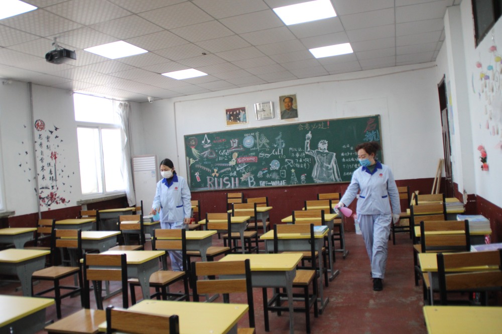 在確保疫情防控的同時,結合開學復學復課要求,勝潔物業志愿者幫助學校開展校園環境衛生大整治,對學校的公共區域:教室、樓梯、球場等進行志愿消毒,助力打造干凈整潔安全的校園環境。