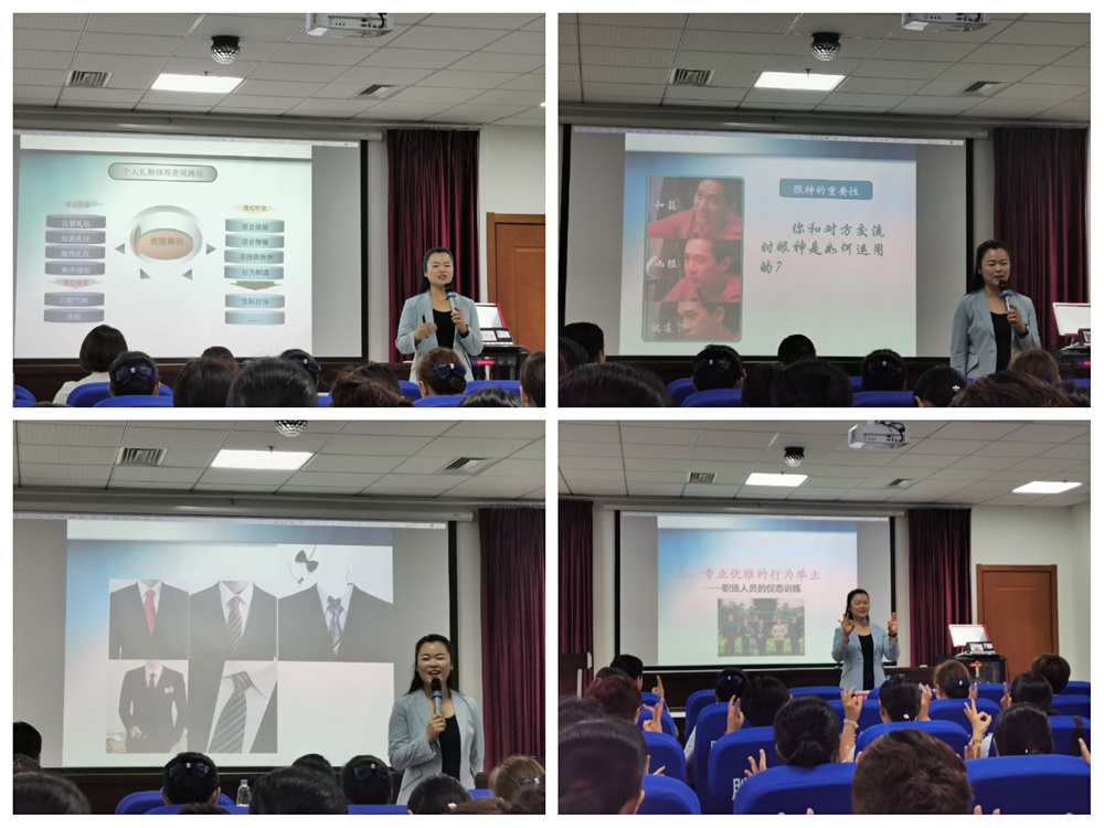 為提升我公司員工商務活動的行為規范,強化個人禮儀習慣的養成,提升企業對外形象。2020年7月15日下午,在公司總部培訓室組織開展商務禮儀培訓,項目經理、項目客服和前臺員工、總部全體員工約80余人參加此次培訓,由英格教育培訓學校鄭艷老師主講。