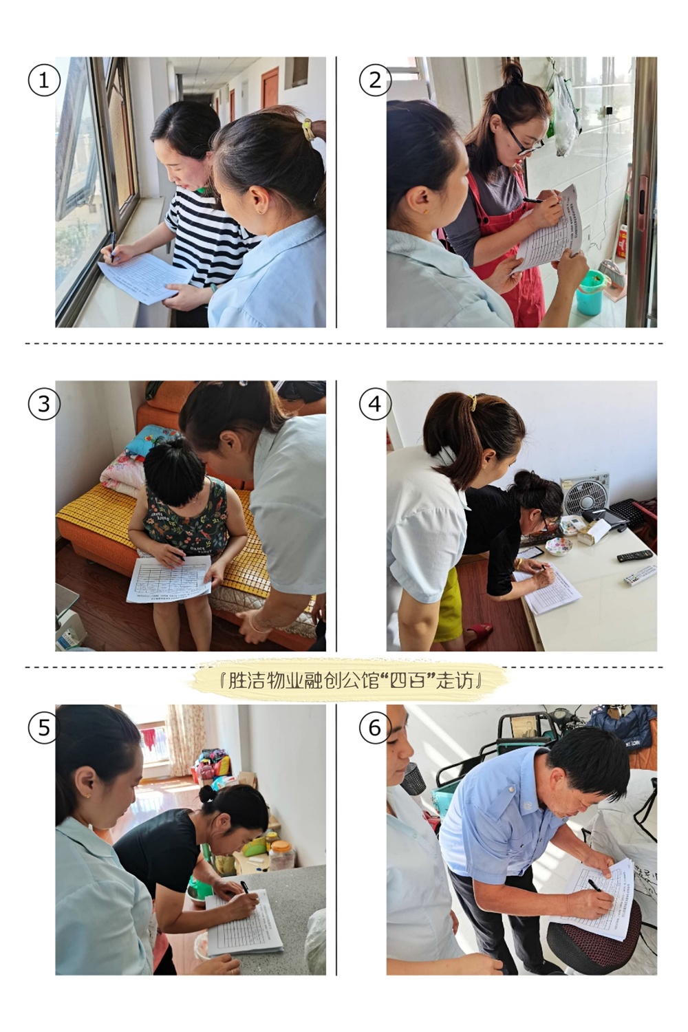 通過“四百”活動進家入戶調(diào)查,勝潔物業(yè)人認真傾聽業(yè)主的需求,虛心接受業(yè)主對物業(yè)服務(wù)工作提出的意見及建議,雙方在溝通中尋找平衡點,保證為業(yè)主提供更切合需求的服務(wù),提高業(yè)主的滿意度,努力為業(yè)主提供更加溫馨周到的物業(yè)服務(wù)。 作 者:魏冠群 掃碼關(guān)注 文章好看就點這里↓